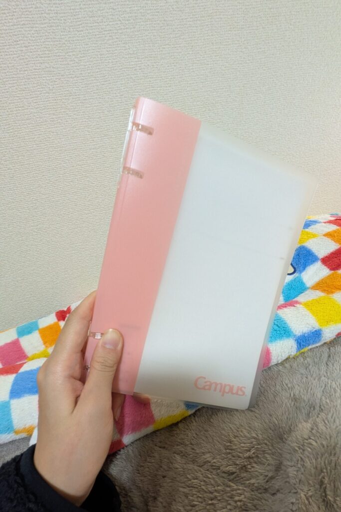 私が使っているのはコクヨの「campus ノートのように使えるバインダー(2×2リング)」のA5サイズ。そしてcampusのルーズリーフを使っています。